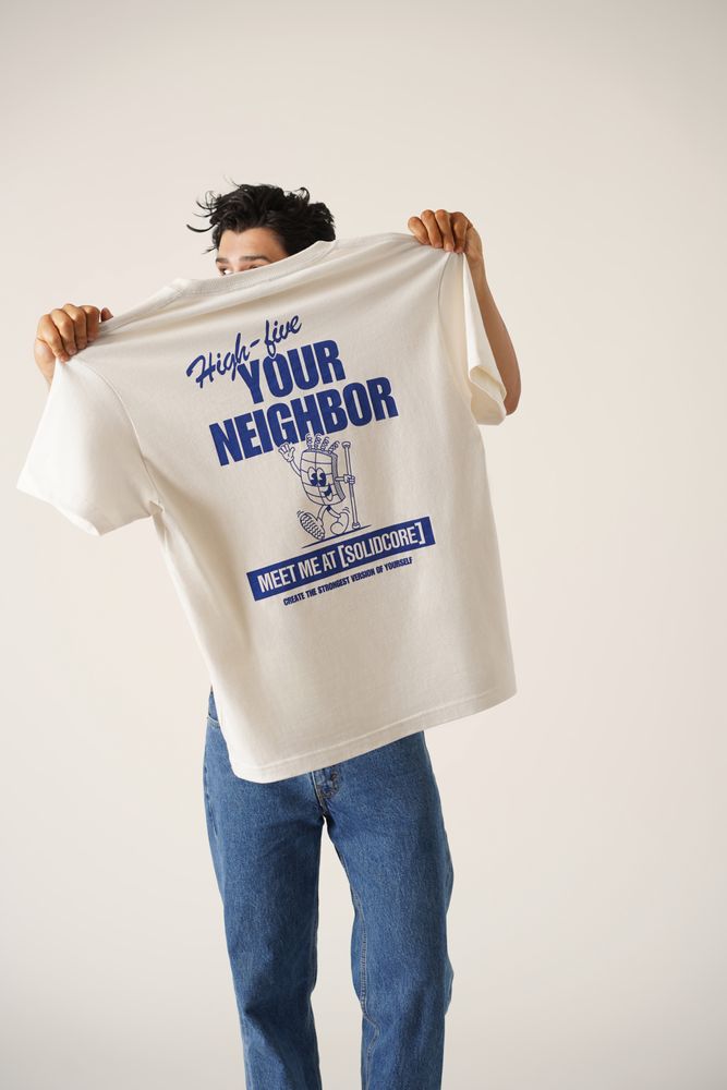 Your post-class ritual, now wearable. Limited edition 'High Five Your Neighbor' tee.